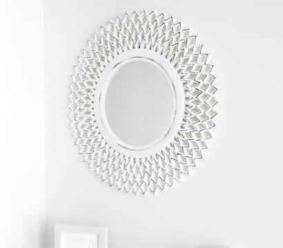 The impressive art beautiful decorative wall mirror in round shape design made of a laser cut 10 mm thick piece of laminated wood, professionally painted with high quality paint, protected with a layer of transparent matte finish varnish and with Saint Gobain high definition mirrors has been CNC cut into decorative customized designs and clustered to outcome as a decorative grand lounge wall mirrors. Step back and see how a once bare wall turns your room into a styled living space. It accentuates any wall with its aesthetic appeal.